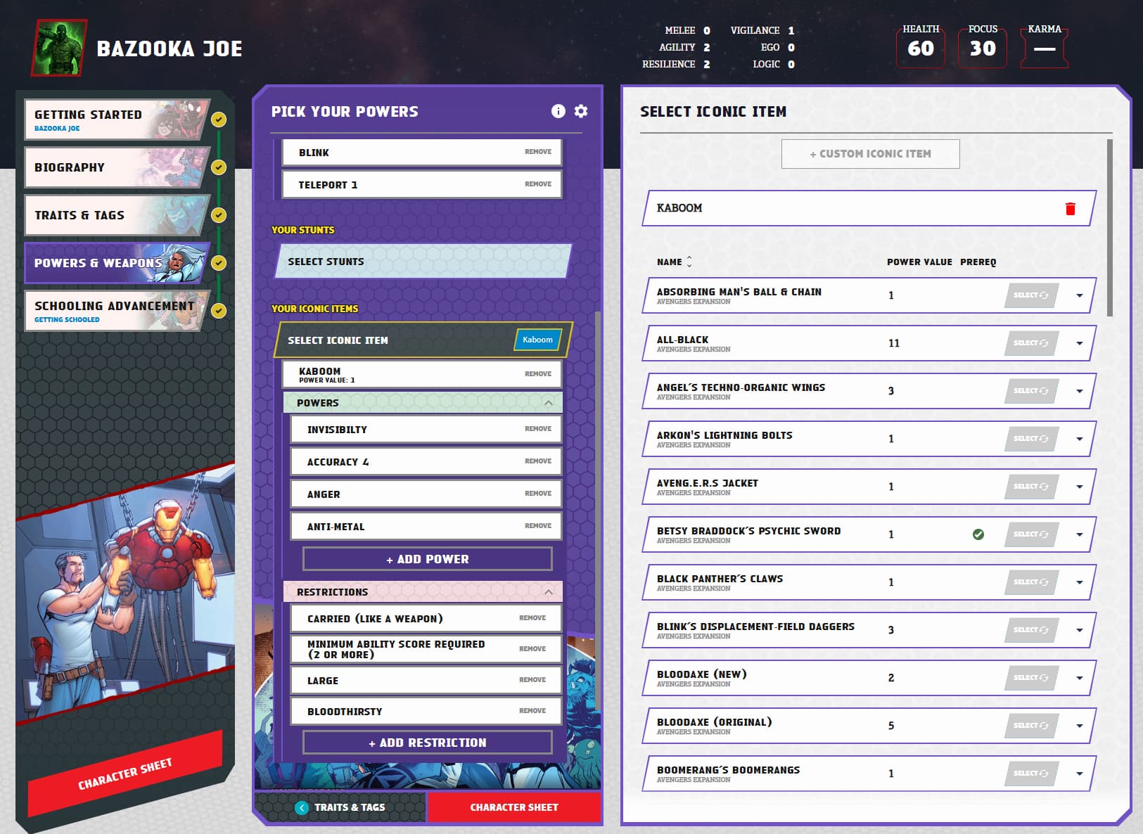 You can make custom Iconic Items in the builder. You can’t make them in the sheet at the moment.