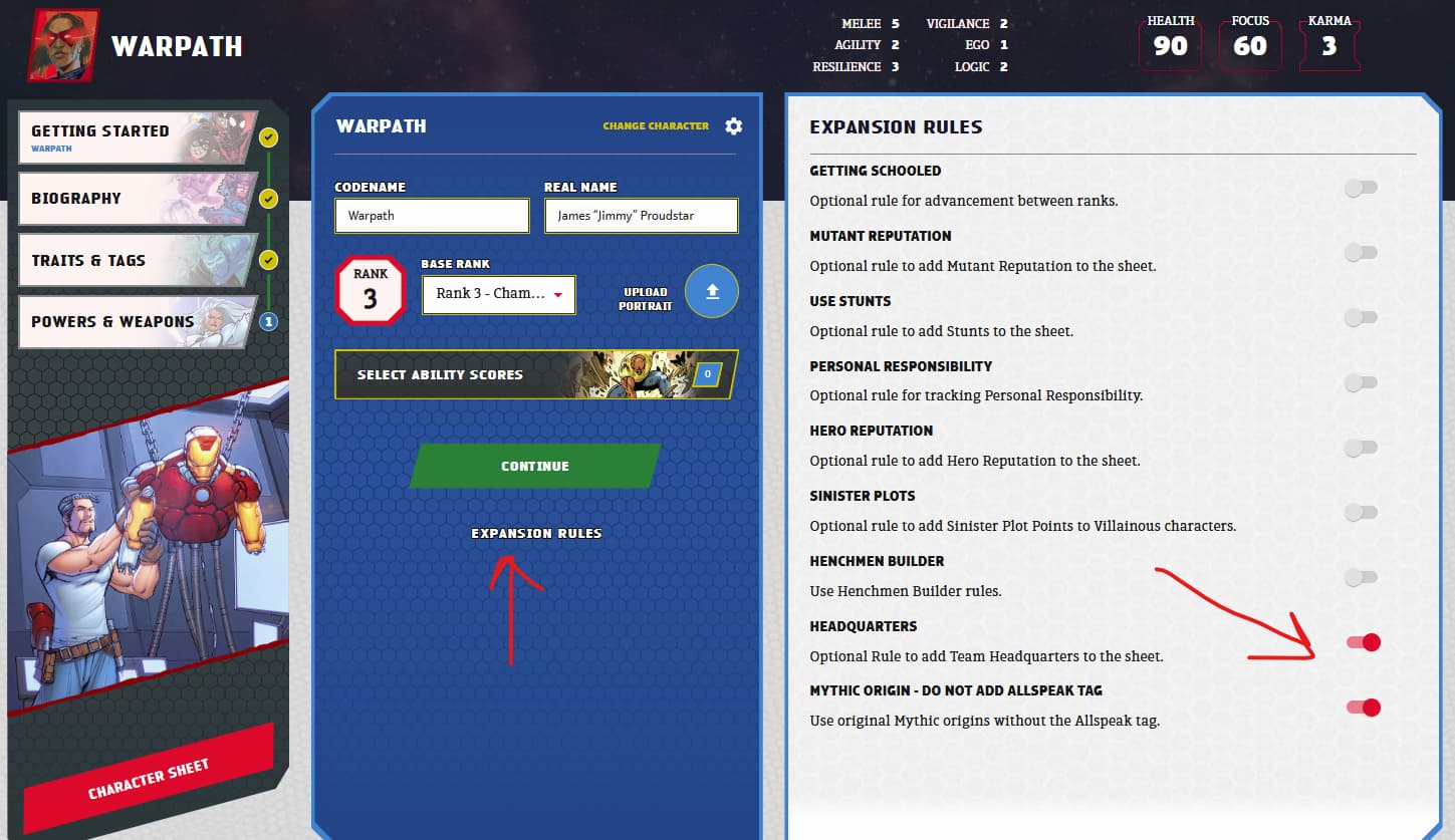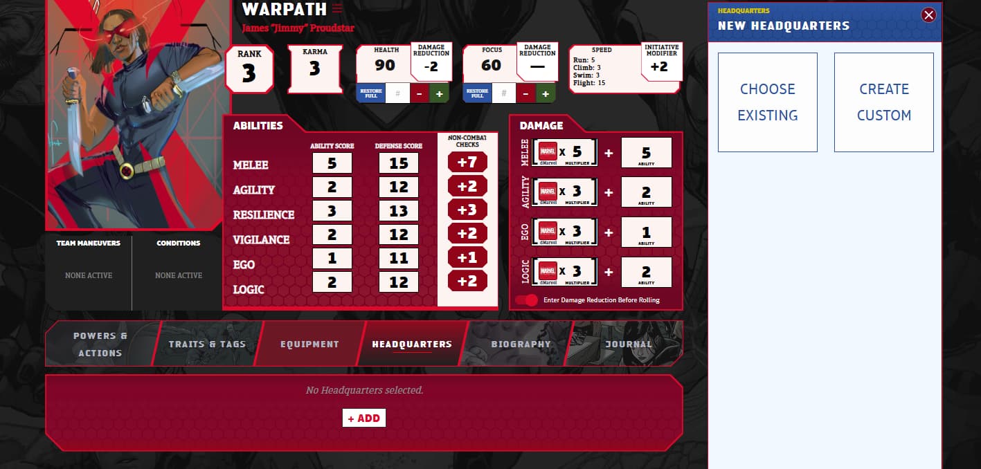 An optional ‘Headquarters’ rule can be turned on in the builder, which will allow you to add a Team Headquarters to your sheet and track Headquarter Traits / Tags