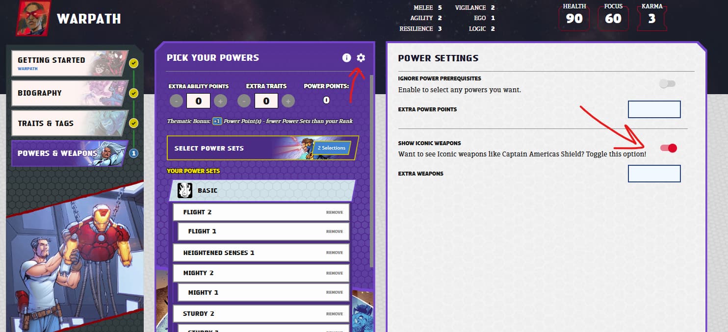 Quickest way to get here on way character is to have the basic - iconic weapon power - and at the bottom of the powers section there will be a select Iconic Item area.