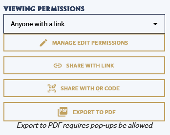 When you open the sidebar that allows you to print the sheet to PDF you’ll want to set Viewing Permissions to “Anyone with the Link” and then click “Share with Link”. Then just put that link here and I’ll be able to make a copy of your character for my research. It won’t directly effect your character at all.