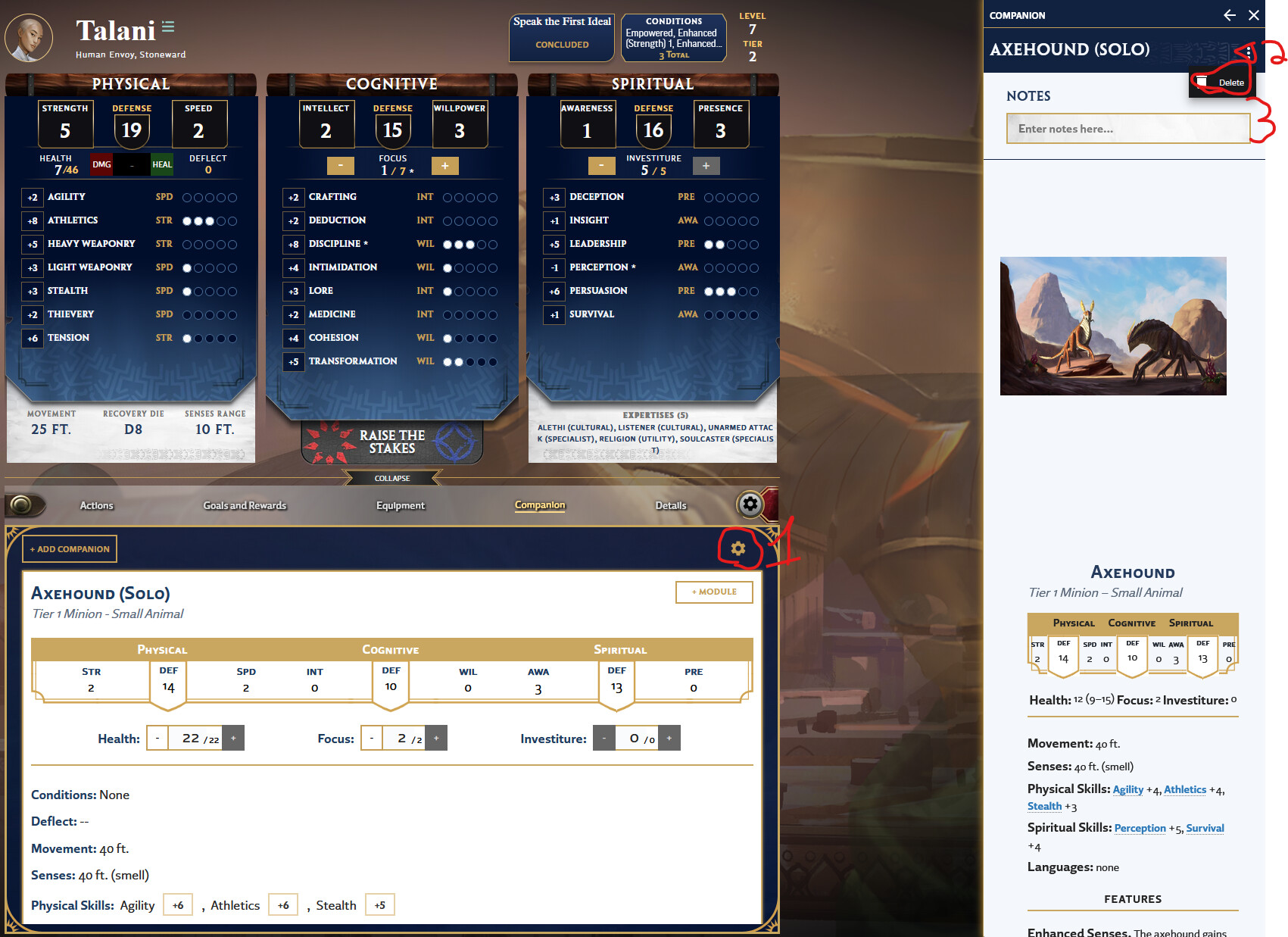 I was trying out the “Companions” feature, and I added one to my character. Now that it’s there, though… I can’t find a way to remove it. Am I missing a “remove companion” button somewhere?