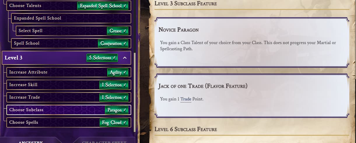 i made a wizard character and when selecting the subclass for lvl 3. i chose the Paragon. which is supposed to grant you a talent from the class and a trade point. when i made the selection to paragon no such choice options were presented. i just got the green box that showed paragon and that was it. n picture attached.