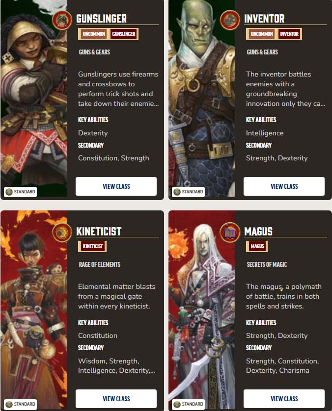 This is probably an overthinking thing on my part, but advising players to look at the green background classes as these are the ones updated and have all the nice, new, QOL stuff to keep things consistent.