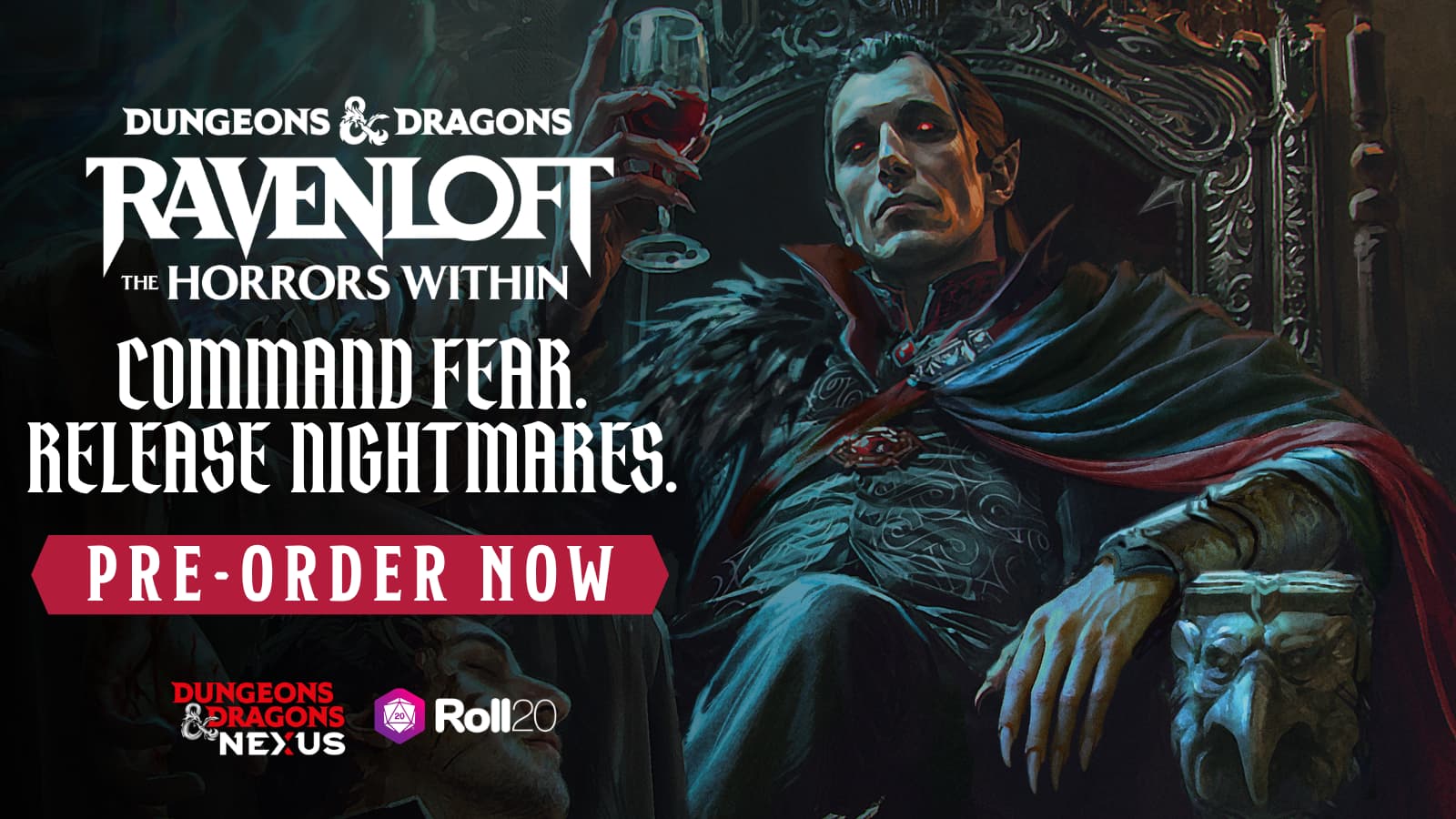 Venture into the Domains of Dread with Ravenloft: The Horrors Within, on the Dungeons & Dragons Nexus. Read the complete sourcebook on desktop, tablet, or mobile, and unlock the full Roll20 content whenyou link your Demiplane and Roll20 accounts.