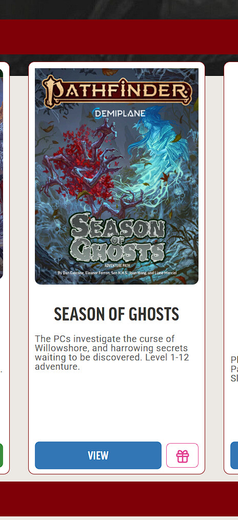 Based on today’s announcement on Discord, I synced my account to Roll20 expecting to see the Season of Ghosts Remaster show up, but alas, it did not.