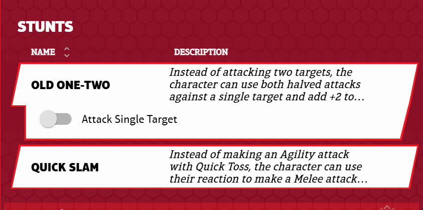We can now add stunts on the character builder, but they are still not listed properly on the sheet. You only see the last one added.