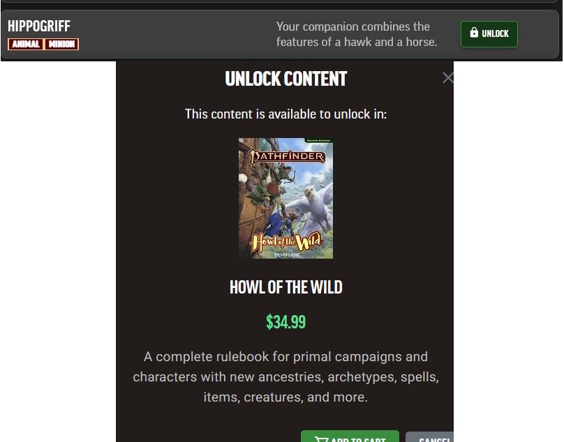 I see that Hippogriff is in Monster Core so I’m unsure why it won’t allow you to add it. Can I get a link to the character sheet? That will help us to look into what’s going on here.