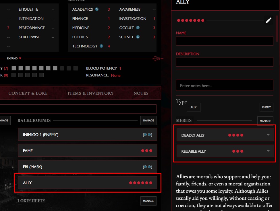 I just wanted to check if there is already an option or setting in the character builder to enforce the rule from the V5 core book stating that “The maximum points in one Ally is six.”