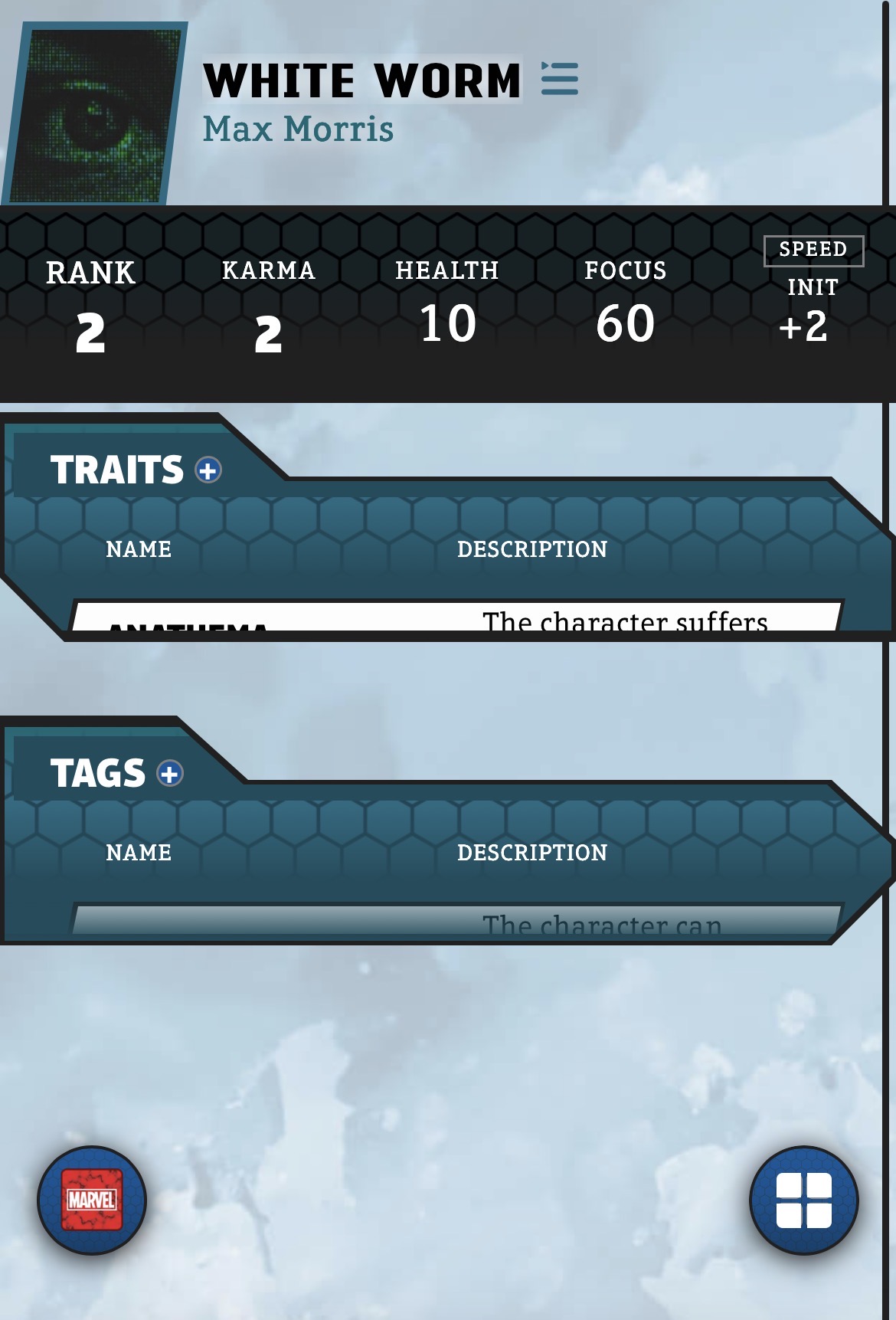 I tried it on DuckDuckGo on the iPhone. When looking at the Traits and Tags, the windows for them are very small (like the screenshot above), but I can scroll through the Traits or Tags still, so the content is there, just not visible.